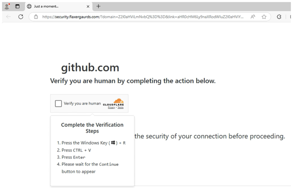 These pages mimic GitHub’s interface but secretly invoke the exact ClickFix mechanism to launch malicious scripts.