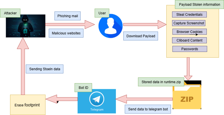 To compress and exfiltrate the stolen information, Shuyal employs a PowerShell script that archives the collected files  runtime.zip before transmitting them to the attacker via a Telegram bot API.