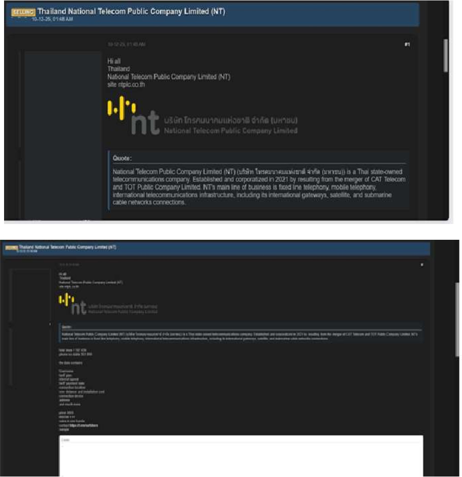 Thailand National Telecom Public Company Limited (NT) Data Advertised on a Leak Site