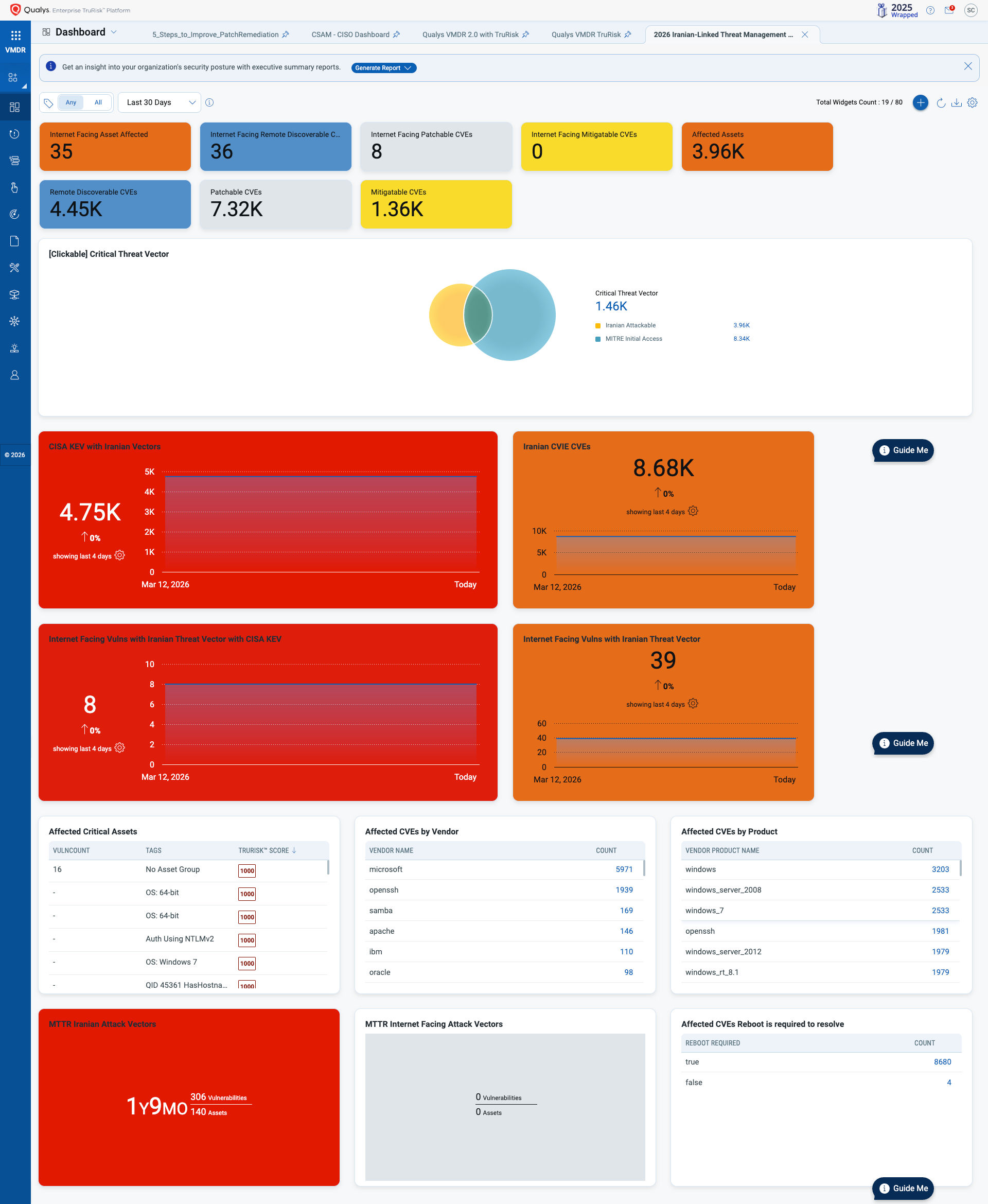 Qualys VMDR can surface CISA CVIE-related CVEs as soon as the 2026 Iranian-Linked Threat Management Dashboard is deployed. The dashboard refreshes on the same polling interval as your existing VMDR data.