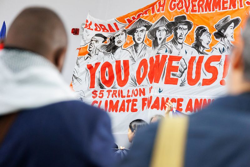 A file photo of civil society groups demanding funding for climate change mitigation at COP30, Brazil, November 2025. Photo: Habib Samadov/UN Climate Change.