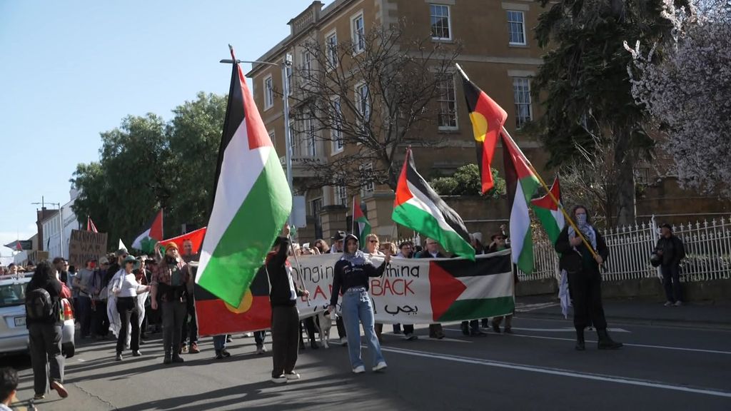 Tasmanians march on Hobart’s streets to demand end to Gaza war